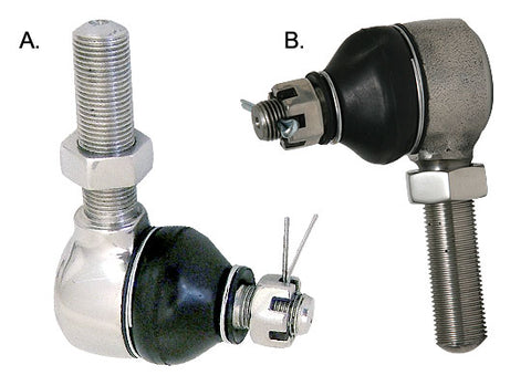 Stainless Steel Tie Rod End. 5/8-18" thread. Can be retrofitted to hairpins in place of straight adjusters. Each come with polished jam nut, castle nut, cotter pin and dust boot.
